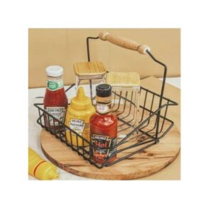 حامل الصلصة ومنظم البرطمانات مصنوع من المعدن القوي بمقبض خشبي مميز
