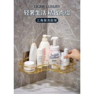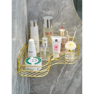 رف حمام زاوية – معدن مع ملصق لاصق – مقاوم للصدأ – تصميم سلة لتصريف المياه – لتنظيم الشامبو والإكسسوارات – طلاء عالي الجودة (دهبي)