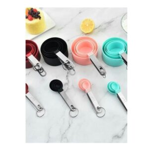 طقم أكواب قياس من 8 قطع – بلاستيك بمقابض من الفولاذ المقاوم للصدأ – أدوات قياس دقيقة وعملية للمطبخ – متعددة الأغراض (ألوان عشوائية)