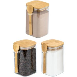 برطمان زجاجي شفاف مع ملعقة خشبية – حاوية بغطاء من الخيزران الأنيق محكم الإغلاق للقهوة أو السكر أو التوابل – تصميم حديث لتخزين المطبخ