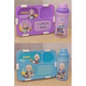 طقم صندوق غداء وزجاجة ماء للأطفال – تصميم كرتوني لطيف، لون تركوازي، مانع للتسرب وسهل الحمل