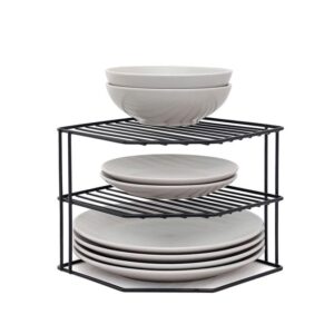 رف أطباق زاوية ثلاثي الطبقات، فكرة لتخزين وتنظيم المطبخ، منظم خزانة مصنوع من الحديد ومطلي بطلاء مقاوم للصدأ (أسود)
