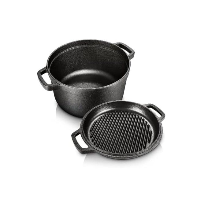 تقدم لك eBASKET مقلاة حديد زهر متعددة الاستخدامات 2 في 1، بغطاء فريد يتحول بسهولة إلى مقلاة، مما يجعلها الإضافة المثالية لمطبخك! مصنوعة من حديد زهر عالي الجودة، هذه المقلاة مصممة لتدوم طويلاً بفضل خامتها عالية الجودة.