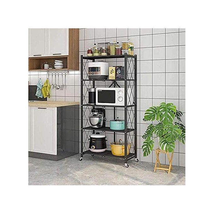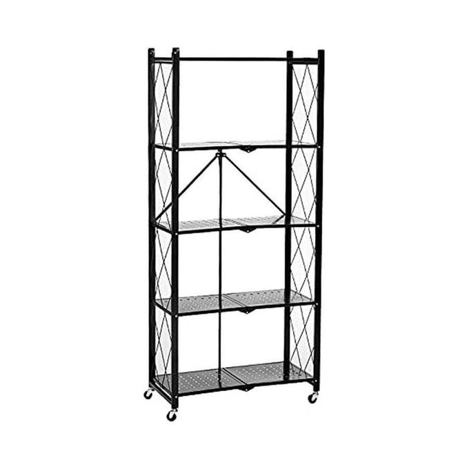رف تخزين معدني قابل للطي بخمس طبقات، مناسب للمرآب بأربع عجلات، خزانة ملابس، رف سلكي، رف تخزين قابل للطي، أسود، 71×34×158 سم