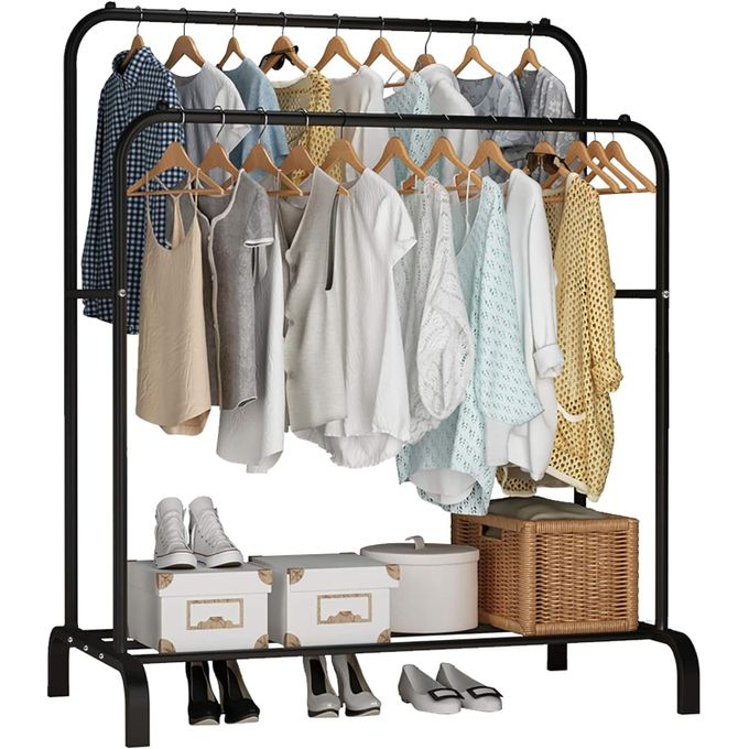 رف الملابس المزدوج متعدد الأغراض هو الخيار الأمثل لكل من يبحث عن تنظيم ملابسه بطريقة أنيقة وعملية. بفضل تصميمه الذكي، يمكنك استيعاب المزيد من الملابس والأحذية، مما يجعله الحل المثالي للغرف الصغيرة أو المزدحمة.