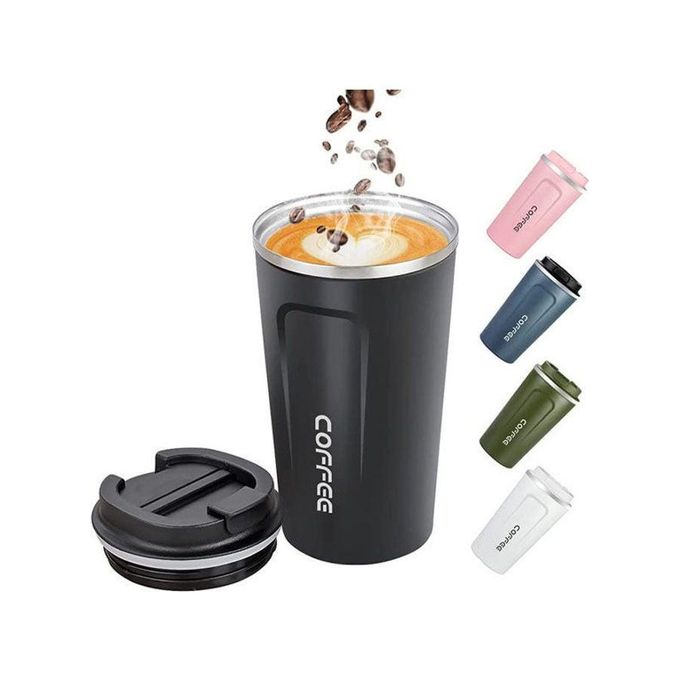ترمس سفر مزدوج الجدار من الفولاذ المقاوم للصدأ، كوب قهوة قابل لإعادة الاستخدام وصديق للبيئة، أسود 510 مل