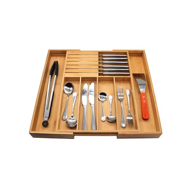 منظم أدراج مطبخ قابل للتمدد مصنوع من الخيزران
