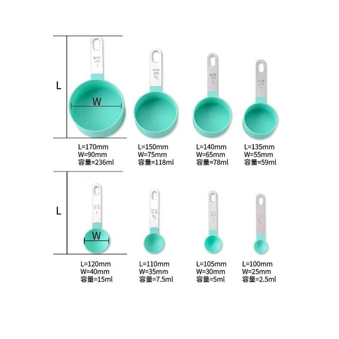 طقم أكواب القياس المكون من 8 قطع هو الخيار المثالي لكل من يحتاج إلى أدوات دقيقة وعملية في المطبخ. مصنوعة من بلاستيك عالي الجودة، تأتي هذه الأكواب مزودة بمقابض من الفولاذ المقاوم للصدأ، مما يضمن لك راحة وسهولة في الاستخدام.
