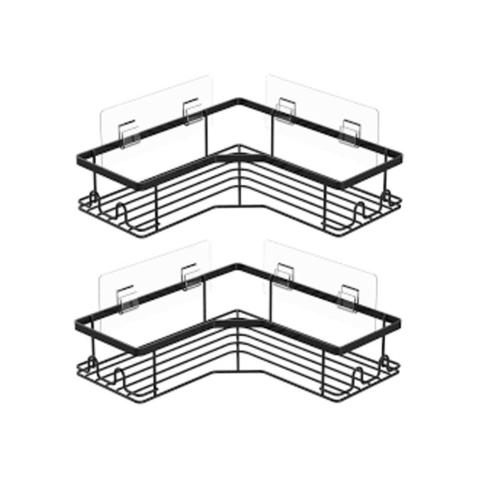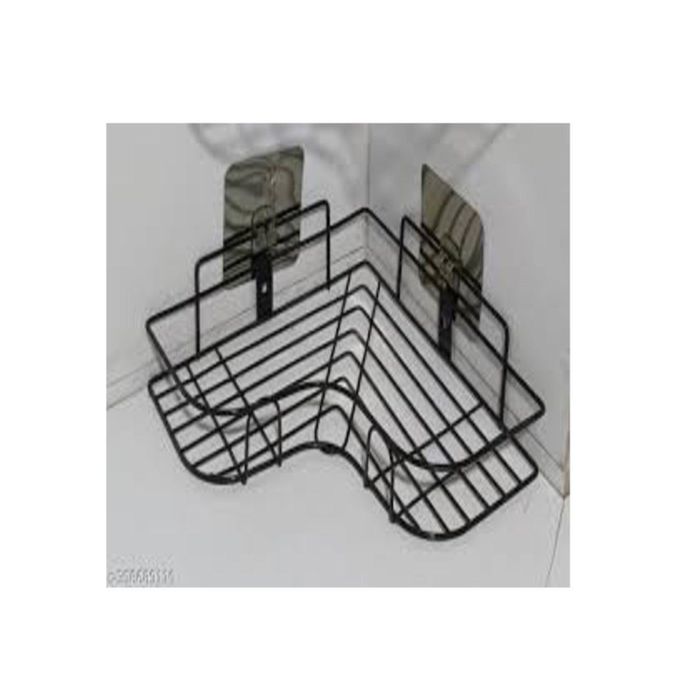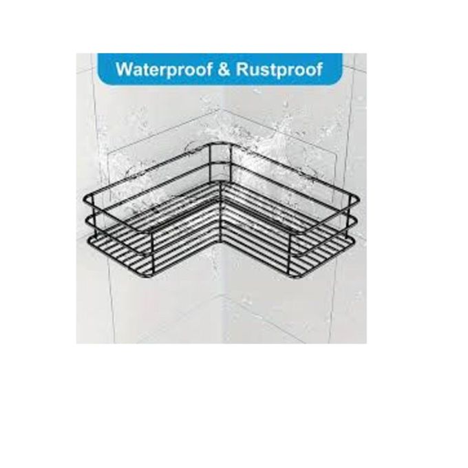 رف زاوية معدني للحمام مزود بملصق مقاوم للصدأ، بتصميم سلة لمنع تراكم الماء، لتنظيم جميع مستلزمات الحمام. مطلي بطلاء عالي الجودة.