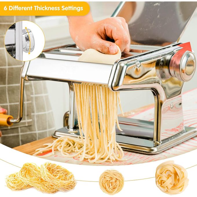 ماكينه صنع المكرونة اليدوية هي الحل المثالي لتحضير المعكرونة الطازجة في المنزل، مما يتيح لك الاستمتاع بتجربة طهي فريدة. مصنوعة من الفولاذ المقاوم للصدأ عالي الجودة، تعتبر هذه الآلة قوية ومتينة، مما يجعلها رفيقك المثالي في المطبخ.