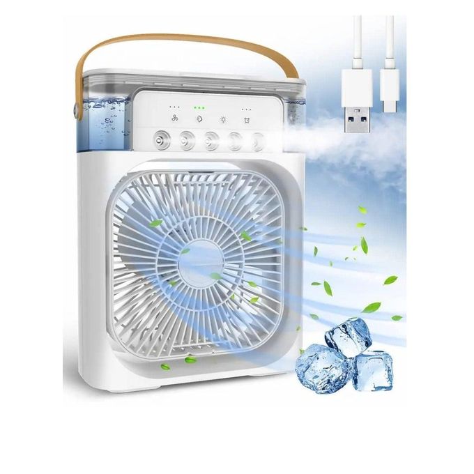 مروحة قوية ومحمولة، تجمع بين وظائف متعددة لتلبية احتياجاتك اليومية. تتميز هذه المروحة بقدرتها على تقديم رذاذ منعش من المياه، مما يساعد على تحسين جودة الهواء في المساحات المغلقة.
