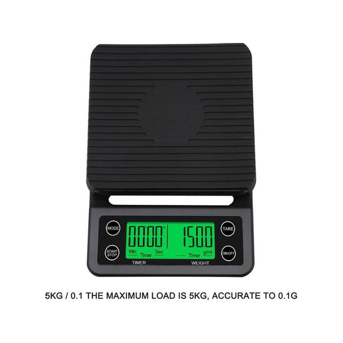 ميزان مطبخ كهربائي دقيق، ميزان قهوة مع مؤقت، ميزان مطبخ عالي الدقة، ميزان منصة إلكتروني صغير، ميزان طعام 5 كجم/0.1، أسود، 23*5*15 سم