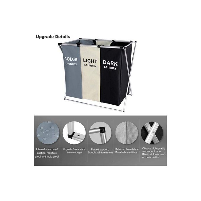 سلة غسيل بثلاثة أقسام، أسود/أبيض/رمادي، سعة 137 لترًا