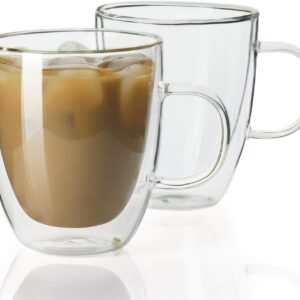 كوب زجاجي معزول حراريا بجدار مزدوج لشرب الشاي والقهوة والاسبريسو والعصير واللاتيه والكابتشينو من سبتلوس، سعة 350 مل